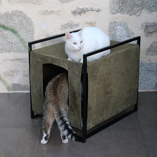 L’espace est aussi un critère essentiel pour le bien-être et le confort du chat. Selon les comportementalistes félins, la diagonale de la maison de toilette doit au moins mesurer 1,5 fois plus que le chat. En moyenne, un chat adulte mesure 44 cm du museau au début de la queue, ce qui lui laisse assez d’espace pour se retourner sans peine dans la maison de toilette Homycat dont la diagonale mesure 66 cm ! Existe aussi en bois en 2 versions.