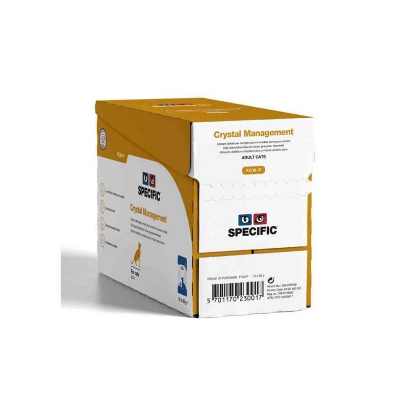 Les sachets SPECIFIC FCW-P CRYSTAL MANAGEMENT sont des sachets de pâtée développés pour réduire la formation récurrente de calculs d'oxalate de calcium et de struvite. Cette pâtée a une teneur modérée en sodium et convient pour une utilisation à long terme.