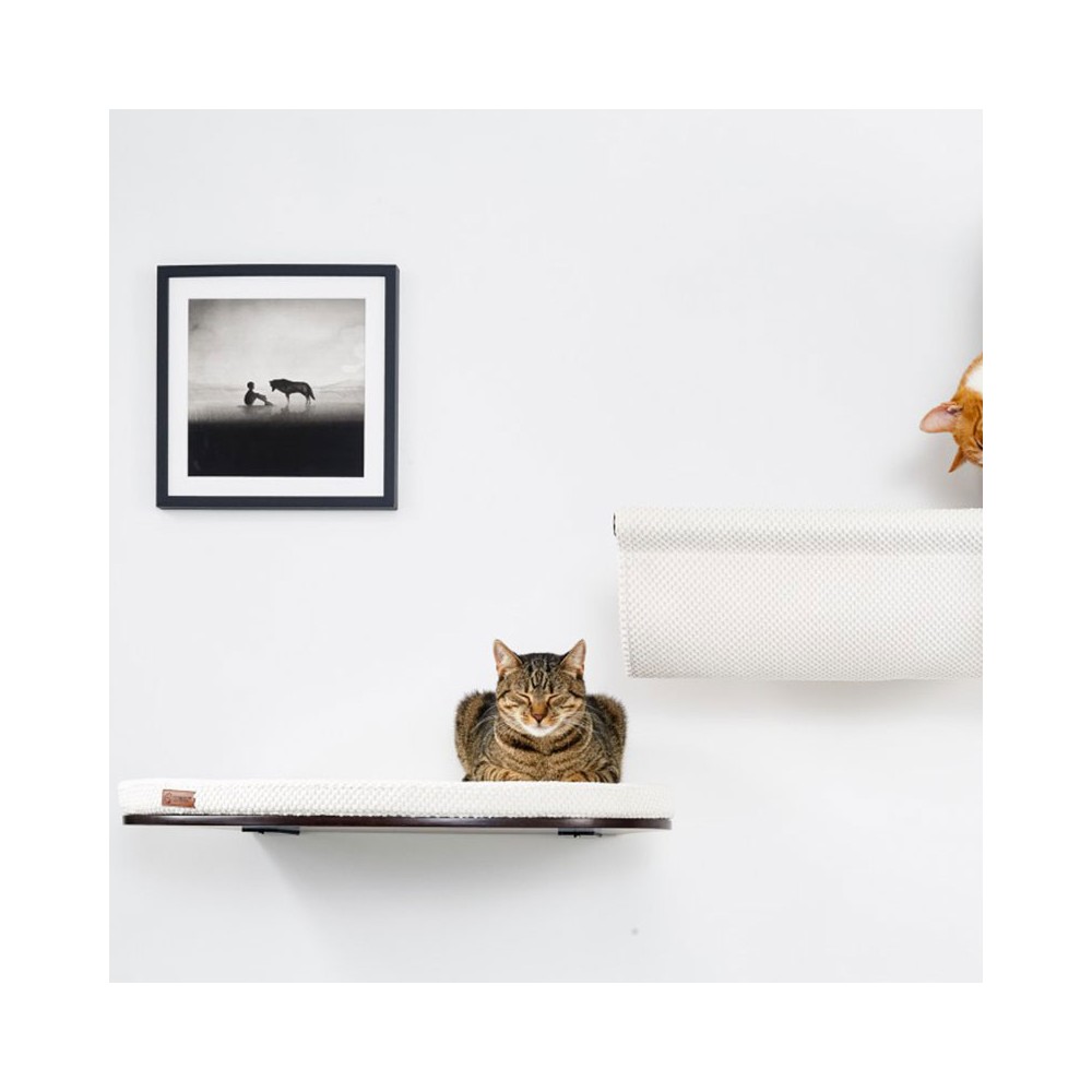 L' étagère murale pour chat Pilvi se compose d'une plateforme en bois foncé exotique wengé, ainsi qu'un large coussin habillé d'un tissu doux au toucher. Avec ses courbes douces et sa forme épurée, ce lit pour chat en hauteur se marie avec toutes les ambiances sans dénoter le style de décoration de la pièce. Son élégant coussin disponible en 3 couleurs, ajoute une note raffinée au décor, tandis que la base en bois de wengé lui confère un aspect authentique et original. De par ses finitions soignées et ses matériaux de grande qualité, cet arbre à chat design constitue une option esthétique et fiable au service du bien-être de votre chat.