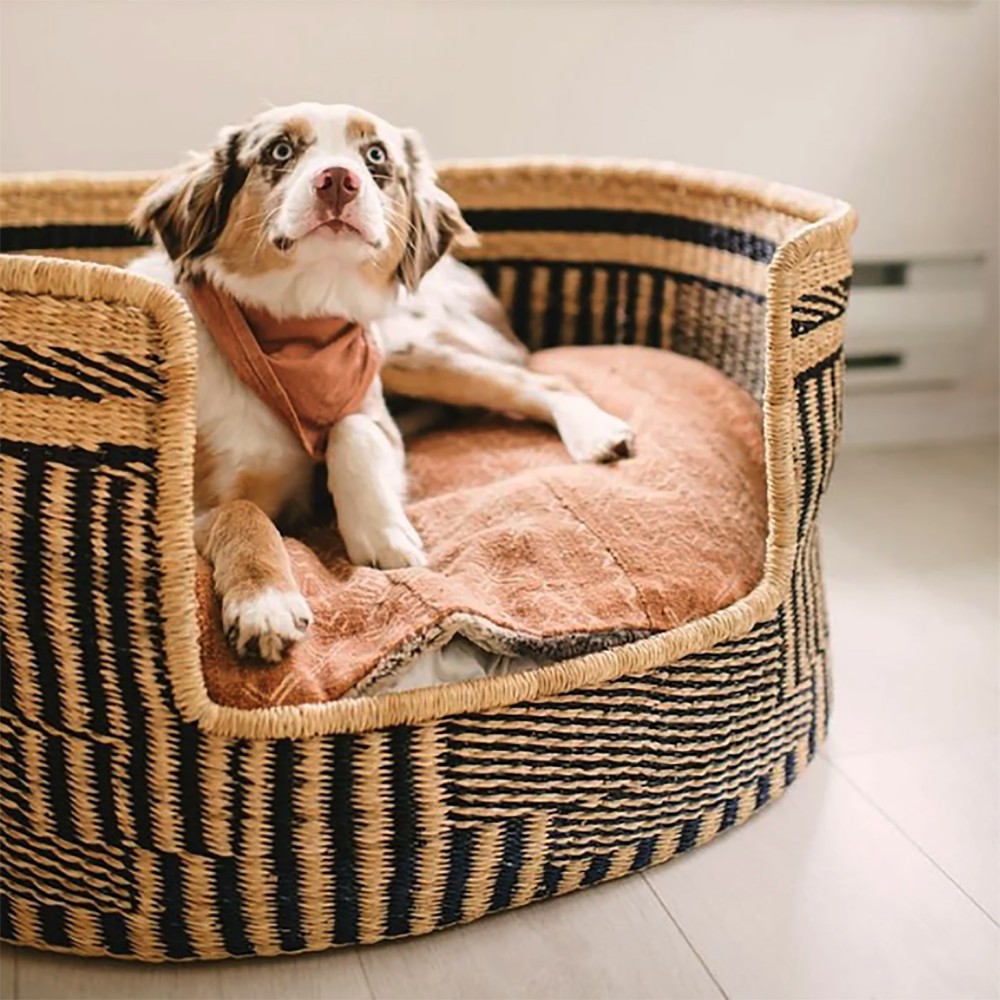 Dans cette finition, le panier tressé pour chien Kauai est disponible en 3 tailles pour convenir à toutes les races de chiens. Il existe aussi en différentes finitions de motifs.