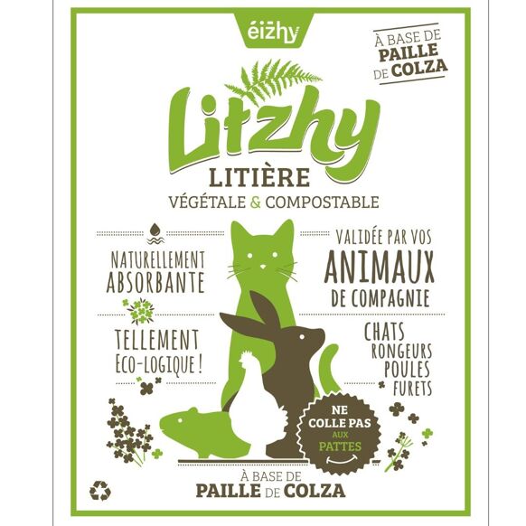 Eizhy - litière végétale et compostable litzhy à base de paille de colza