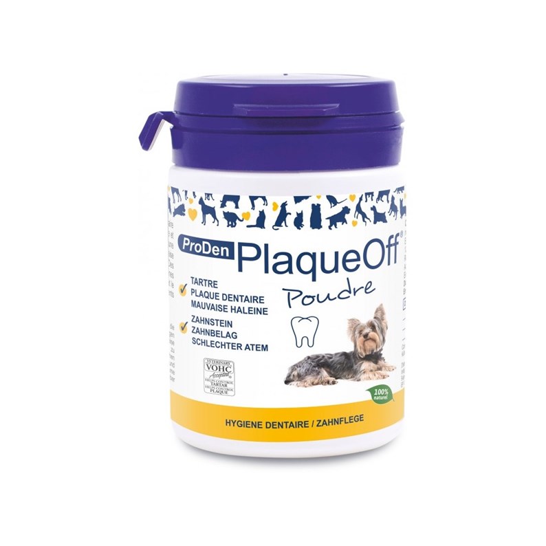 PRODEN PLAQUE OFF CHIEN ET CHAT permet de contrôler la plaque dentaire et le tartre existant que peut avoir votre chien ou votre chat de façon optimale et naturelle.
