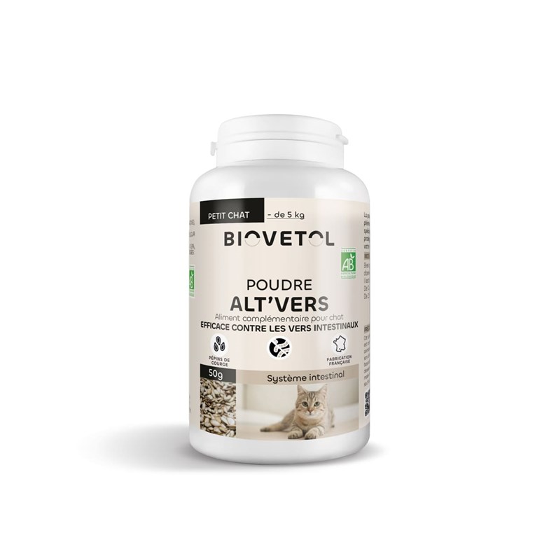 Courge bio* (pépins) 70%, curcuma bio* (racine), thym bio* (feuilles).Additif (/g) : additif technologique : Kieselgur (terre de diatomée purifiée) 150 mgConstituants analytiques : Protéines : 41,8%, Cellulose brute : 5,8%, Teneur en matières grasses : 9,4%, Cendres brutes : 21,3% *100 % des matières premières d’origine agricole sont issues de l’agriculture biologique