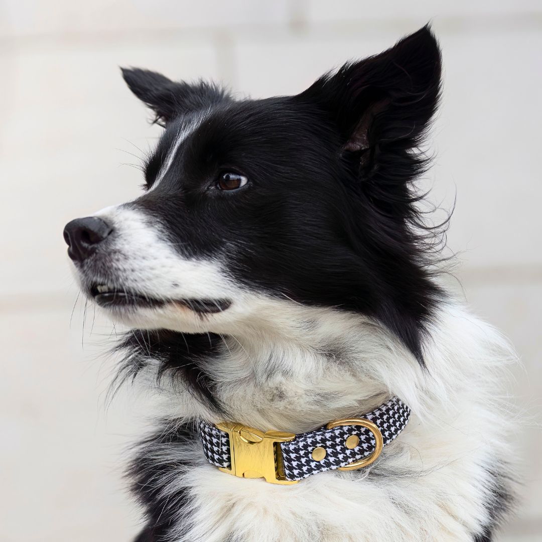 Découvrez le collier pour chien Le Pied-de-Poule (en Taille M), un accessoire qui allie résistance et élégance pour votre fidèle boule de poils.