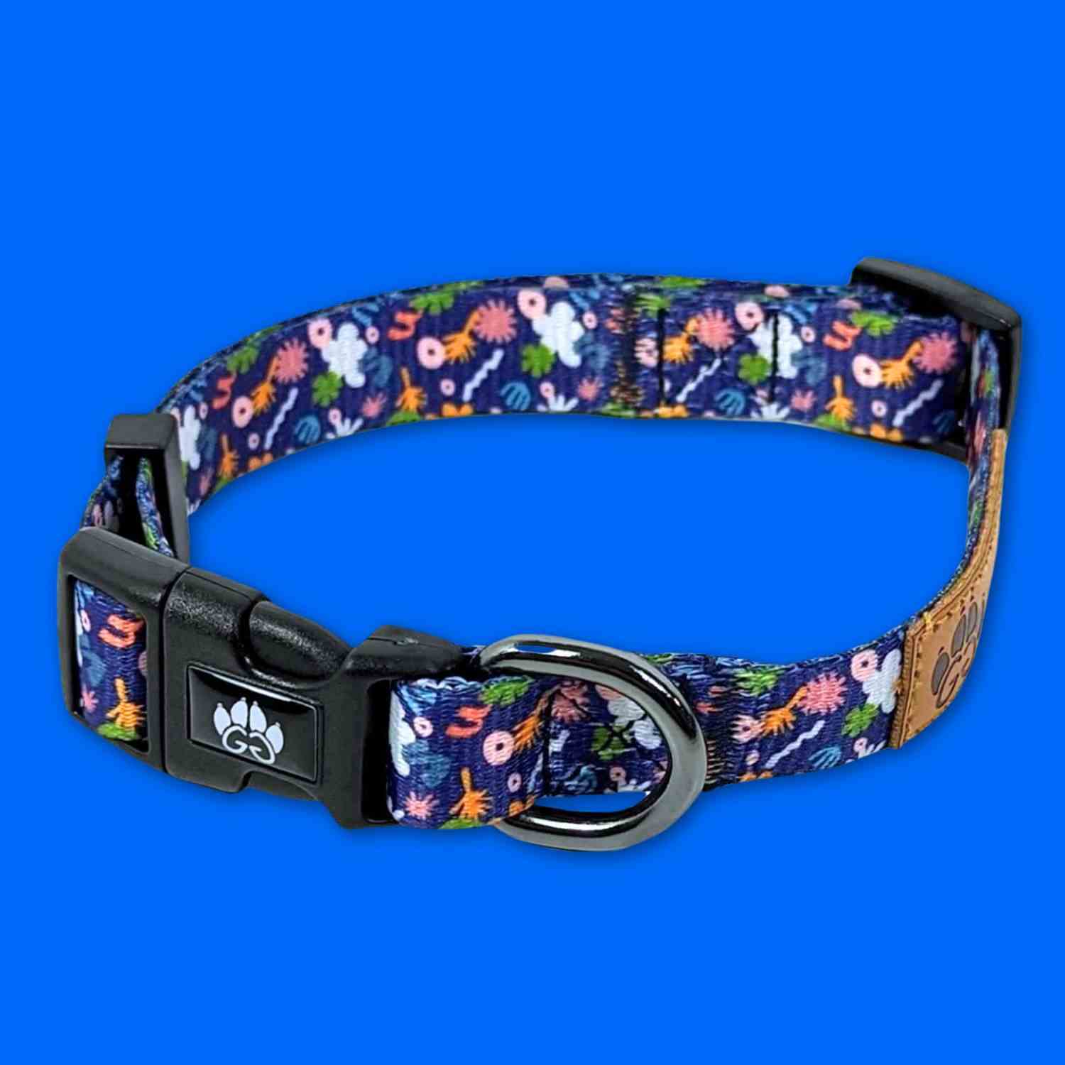 Le collier pour chien Deep Agua avec ses différents motifs des fonds marins et coloris sur fond bleu marine en polyester résistant est un choix idéal pour les propriétaires d'animaux soucieux du confort et de la sécurité de leur compagnon. Fabriqué à partir de polyester de qualité, ce collier imprimé est conçu pour résister aux rigueurs de la vie quotidienne de votre chien, tout en offrant une sensation douce et confortable autour de son cou. Vous pouvez compléter l'ensemble avec la laisse, le harnais ou les accessoires pour chien assortis de la gamme Deep Agua pour un look harmonisé.