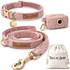 Set pour chien en tweed rose: collier réglable, laisse, porte-sacs taille s