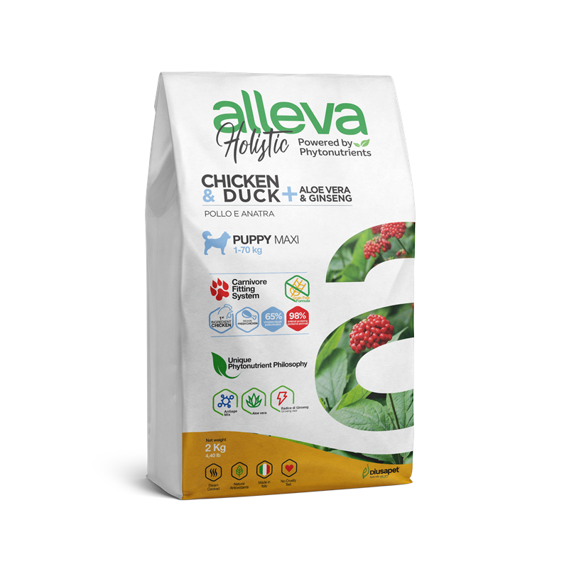 Alleva - croquettes sans céréales poulet et canard pour chiot de grande taille