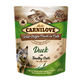 85% viande et organes (59% dindon, 26% canard), 9% bouillon, 4% fléole des prés, 1% minéraux, 1% huile de lin.Additifs nutritionnels par kg : vitamine D3 (3a671) 200 unités, vitamine E (3a700) 100 mg, biotine (3a880) 0,5 mg, zinc (3b606) 12 mg, manganèse (3b504) 3 mg, fer (3b106) 10 mg, cuivre (3b406) 4 mg, iode (3b201) 0,7 mg, taurine (3a370) 800 mg. Additifs technologiques par kg : gomme de caroube (E 410) 4,000 mg. Contient des antioxydants naturels
