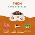 Thon et saumon 50 % (26 % de thon frais préparé, 19 % de saumon déshydraté, 3 % d'huile de saumon, 2 % de bouillon de saumon),