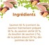 Saumon 60 % (contient du saumon frais préparé 38 %, du saumon séché 20 %, du bouillon de saumon 2 %), patate douce (19 %), pommes de terre, pulpe de betterave (désucrée), graines de lin, minéraux, carotte, pois (0,2 %), huile de poisson, glucosamine (355 mg/kg), méthylsulfonylméthane (355 mg/kg), sulfate de chondroïtine (250 mg/kg), nucléotides, fructo-oligosaccharides (FOS, 96 mg/kg), mannan-oligosaccharides (MOS, 24 mg/kg)