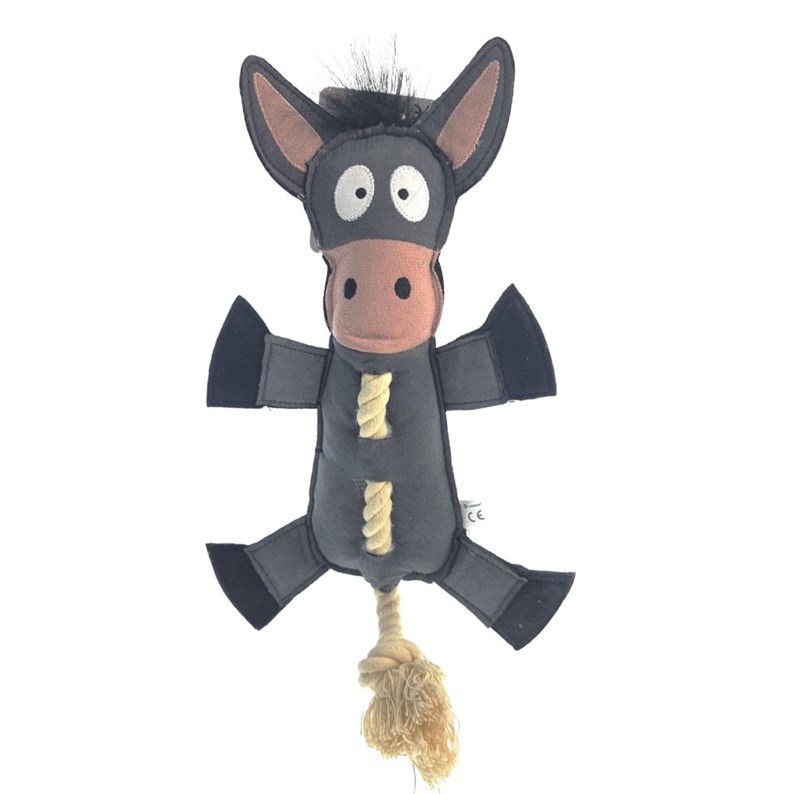 Jouet âne gris avec corde 40 cm pour ch