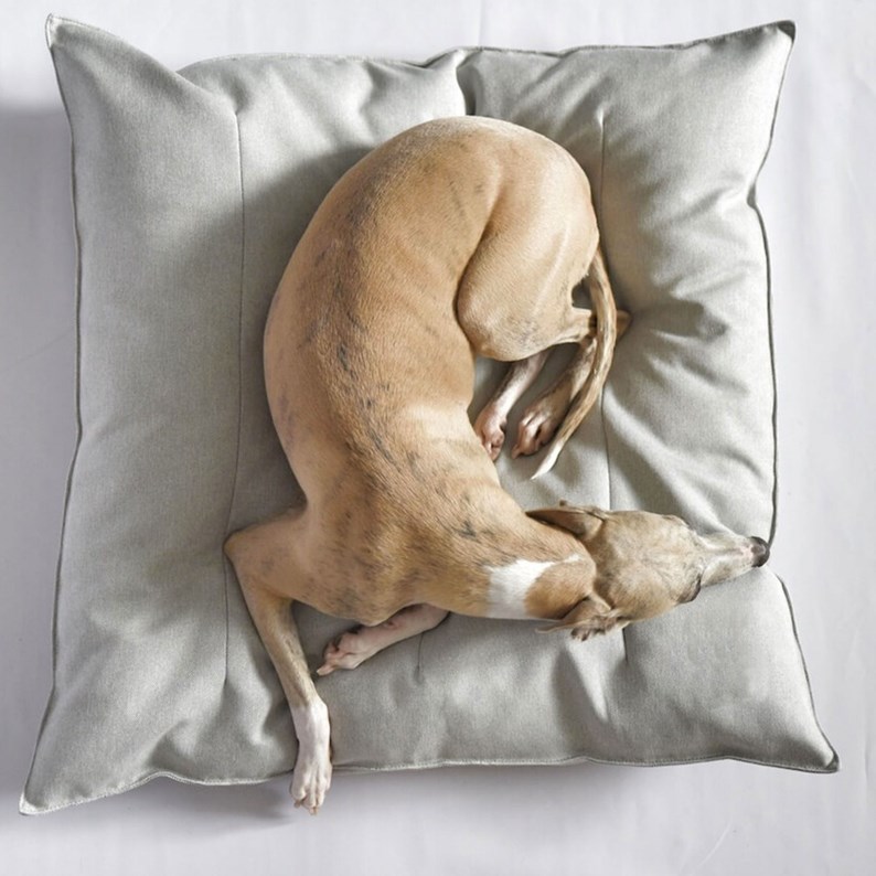 Le coussin design pour chien Hoina existe en plusieurs couleurs (gris clair, beige, gris anthracite...) et 3 tailles (longueur x profondeur x hauteur) :