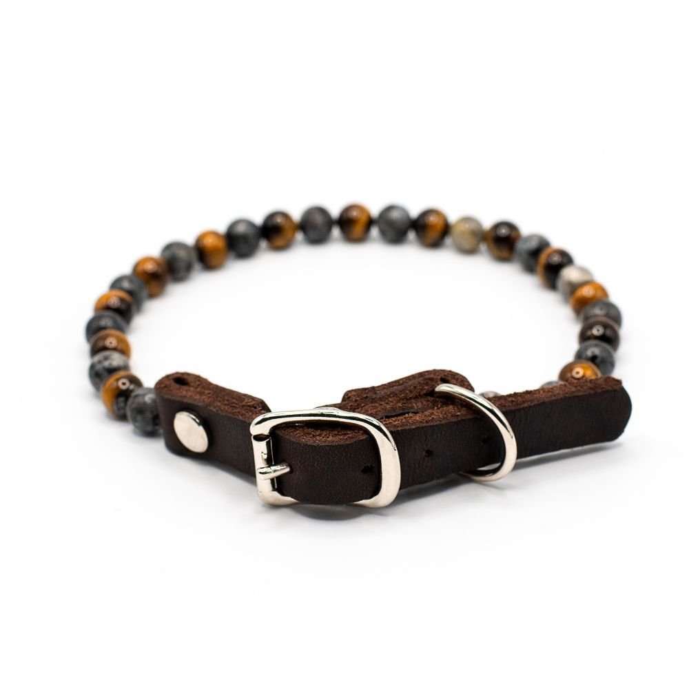 Les pierres diffusent une vibration subtile qui entre en résonance avec le champ énergétique du chien. Le Collier Courage aide à apaiser la peur et à renforcer la sécurité intérieure.