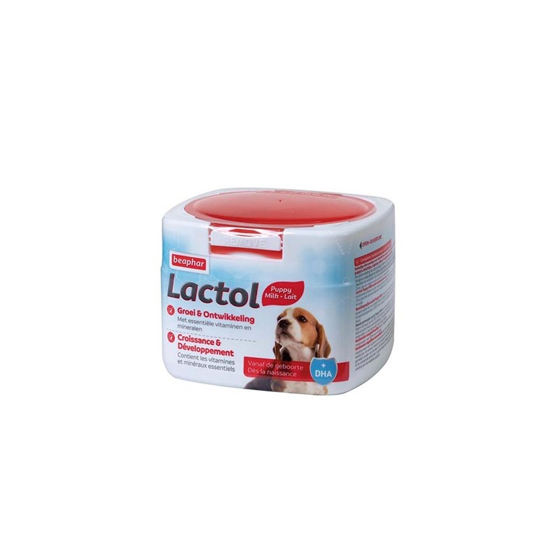 Le laboratoire Beaphar vous propose le lait maternisé Lactol. C'est un aliment complet, que vous pourrez utiliser dès la naissance des chiots, jusqu'au sevrage.