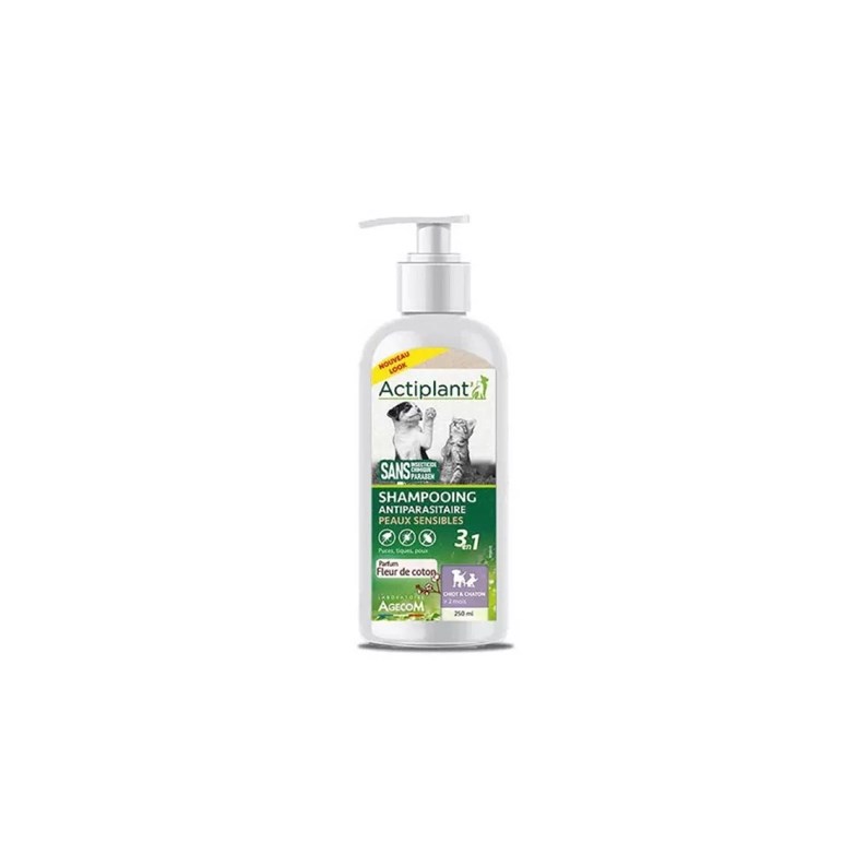 Le shampooing spécial peau sensible permet de laver délicatement lépiderme de votre chiot et chaton. Il lui laisse un pelage doux et une peau protégée, parfumée dune agréable odeur de fleur de coton. Le shampooing 2 en 1 permet ainsi de lutter contre les parasites tout en nettoyant votre animal en un seul geste.