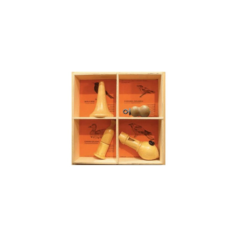 Coffret bois 4 appeaux - merle-rossignol