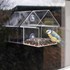 Mangeoire en forme de maison peut être placée sur la fenêtre à l'aide de deux ventouses. Grâce au matériau transparent, il est possible d'observer comment les oiseaux profitent de leur nourriture. Le produit est facile à nettoyer. La mangeoire est livrée dans une boîte décorative, y compris deux ventouses pour la placer sur la fenêtre ou sur le mur.