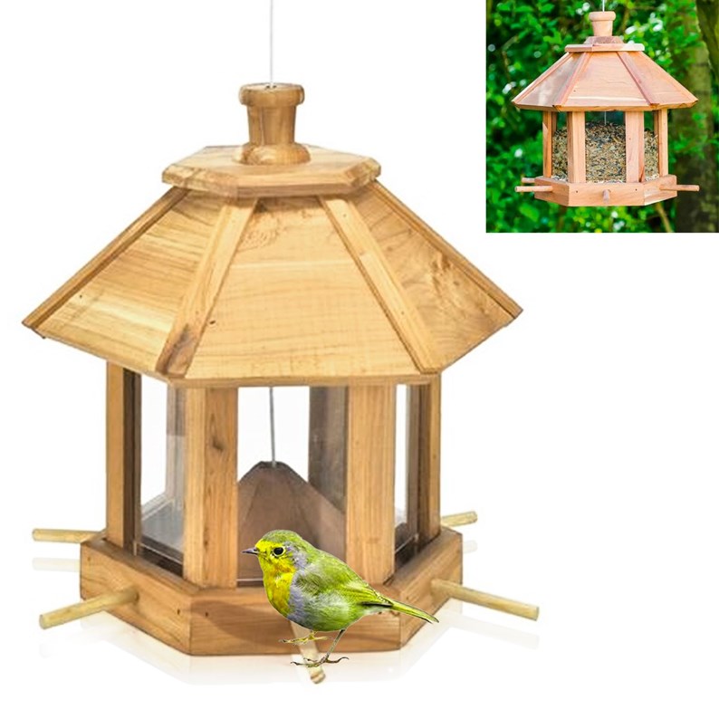 Mangeoire hexagonale en bois de cèdre rouge - 6 emplacements oiseaux