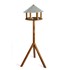 - Cette mangeoire est munie d'un trépied. Ils sont tous deux fabriqués en chêne. Le bois est traité à l'huile pour le protéger des intempéries. Et le toit de la mangeoire est en acier galvanisé pour plus de robustesse.