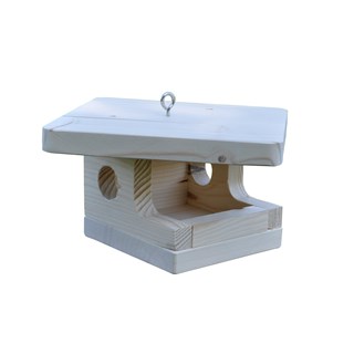Voici une mangeoire pour oiseau. Fabriquée en France , unitairement dans notre atelier de façon artisanale avec du bois de sapin issu de forêts durablement gérées.
