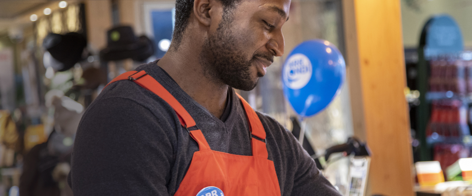 Le petit logo bleu que vous pouvez voir dans nos magasins et sur notre site est celui de notre partenaire, MicroDon. Une entreprise sociale et solidaire qui développe depuis 2009 des dispositifs innovants de levée de fonds.
