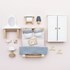 Son design classique aux tons neutres s'harmonise parfaitement avec les maisons de poupées en bois et complétera à merveille l'univers de jeu de votre enfant. L'ensemble comprend notamment un lit, une élégante armoire avec cintres, une table de chevet avec lampe, une ravissante coiffeuse, un tabouret et des accessoires. Dimensions de l'armoire : 10,5 x 5,8 x 14,8 cm.