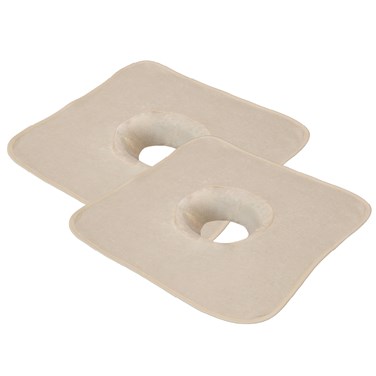 Avec ses dimensions de 35 x 35 cm et son trou central de 14 cm , elle s'adapte parfaitement à la majorité des tables de massage. La cavité visage est ainsi protégée, tout en permettant une respiration fluide et naturelle lorsque le client est installé en position ventrale.