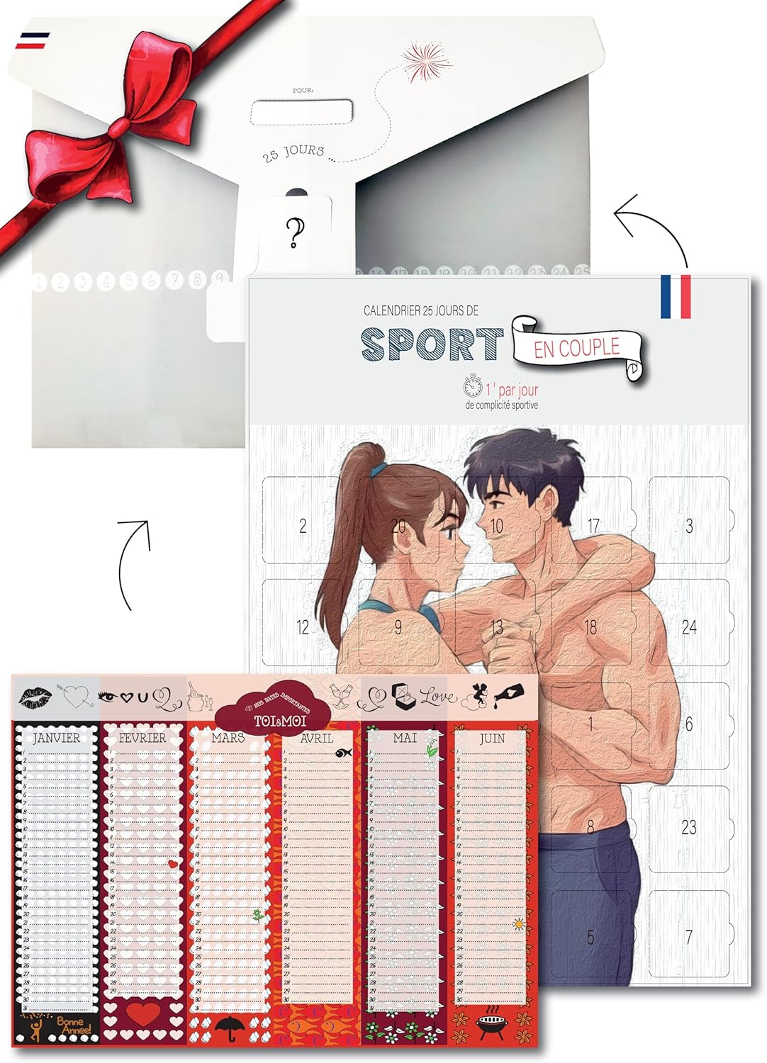 Pochette surprise couple sportif, calendrier 25 défis et calendrier perpétuel