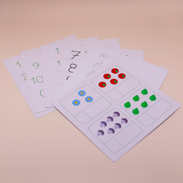 Ce set de fiches à jouer est exclusivement compatible avec la mallette des chiffres (réf. 30160460) vendue sur notre site. Elles présentent des activités ludiques pour apprendre à compter.