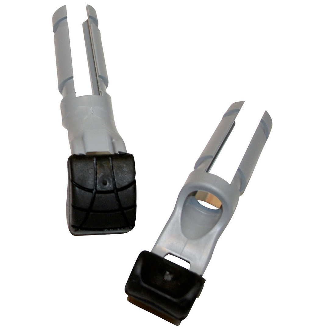 Il est ainsi facile de changer l'embout en fonction du type de terrain (embout caoutchouc sur asphalte ; pointe sur terrain meuble).
