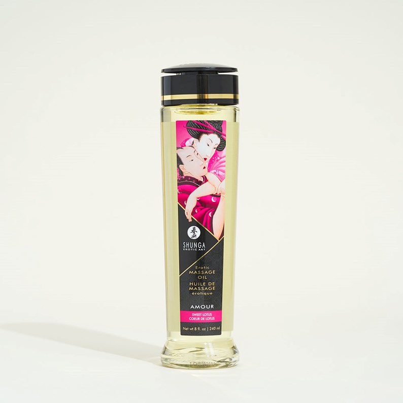 La marque Shunga a déjà fait ses preuves dans le monde du massage. Cette huile innovante ne procure aucune sensation grasse. En effet, elle est constituée d'un cocktail d'huiles pressées à froid : amande, pépins de raisin, sésame, avocat, et extraits de yohimbe, associées à des huiles essentielles aromatisantes aux qualités énergisantes et stimulantes.