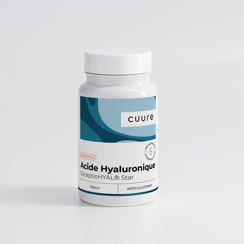 Acide hyaluronique ExceptionHYAL® Star à spectre complet (50-3000 kDa) enrichi en vitamine C pour stimuler la synthèse de collagène.