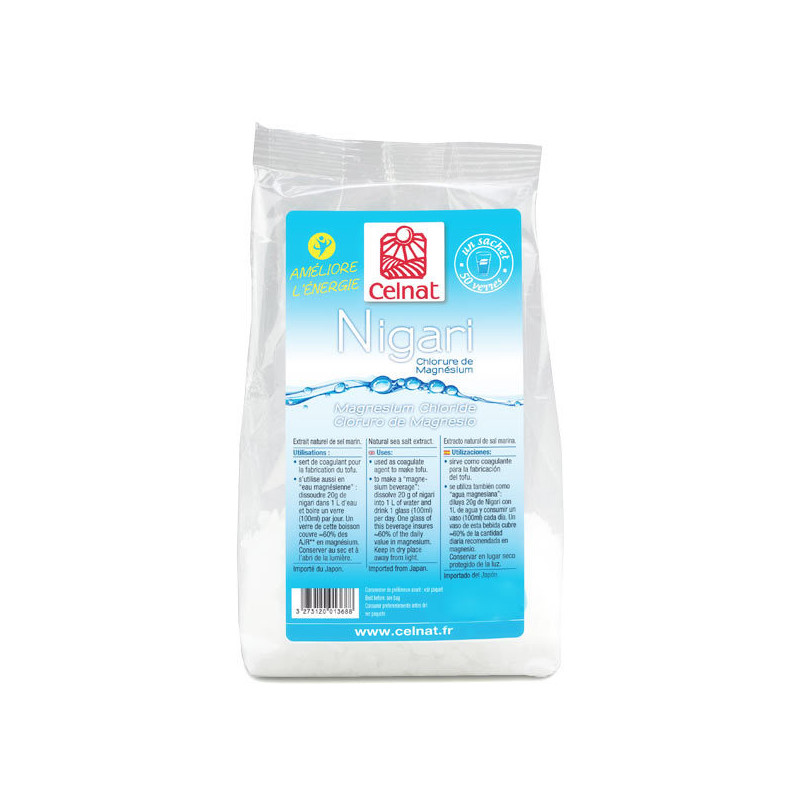 Nigari est le nom Japonais donné au chlorure de magnésium, il s'agit d'un sel marin cristallisé qui n'a pas été raffiné.