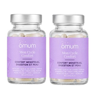 Pour les symptômes psychologiques du syndrome prémenstruel (stress, anxiété, sautes d’humeur, troubles du sommeil), vous pouvez prendre le complément alimentaire Mon Cycle Zen d’Omum en même temps, sans risque de surdosage. Effectuez une pause tous les 3 mois d’au moins 3 semaines. En cas d’inconforts intimes, L'Intime Complément Alimentaire d’Omum peut également être associé à la prise de Mon Cycle Confort.