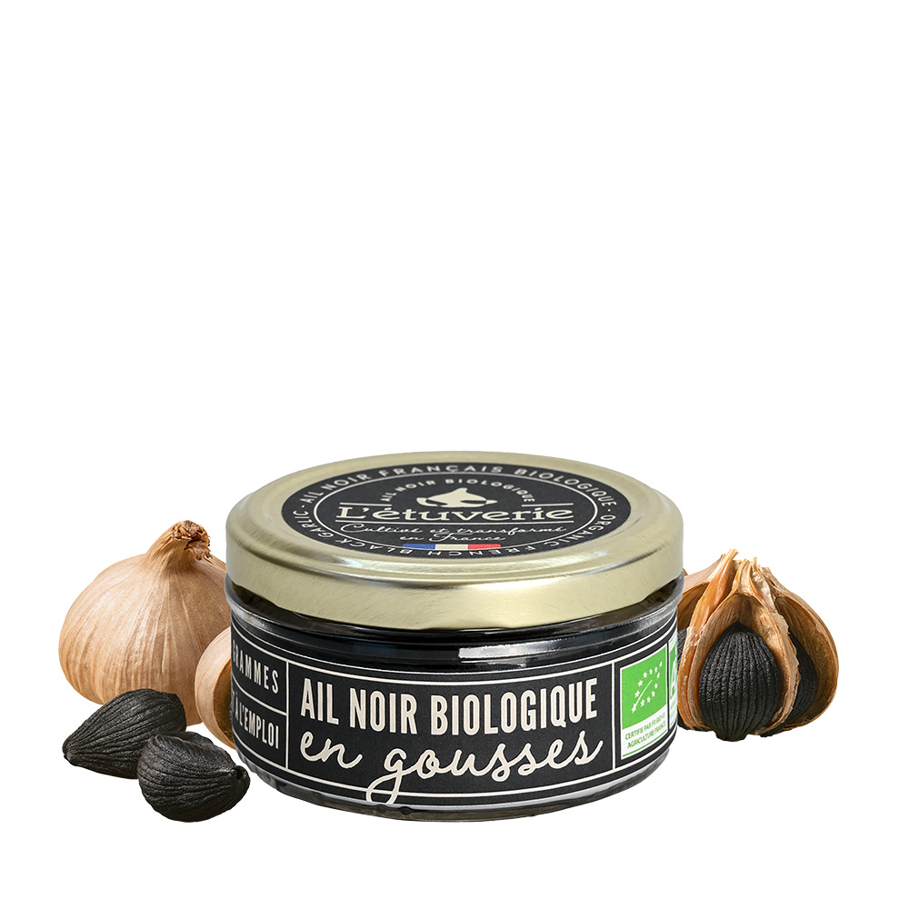 Fruit d’un savoir-faire artisanal, l’ail blanc se transforme progressivement, sous contrôle précis de température et d’humidité, pour devenir fondant, noir intense et riche en arômes subtils évoquant caramel, réglisse ou vinaigre balsamique.