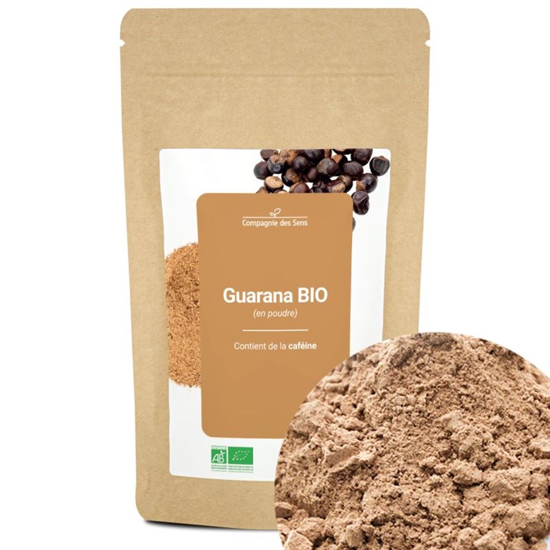 Cette poudre de Guarana est certifiée BIO par Ecocert (FR-BIO-01). Elle contient de la caféine à une haute teneur naturelle de 3,5 % en provenance du Brésil. La poudre de Guarana est vendue en vrac dans un sachet hermétique pour préserver tous ses bienfaits et l'utiliser facilement au quotidien. Il est possible de la diluer ou la saupoudrer dans une boisson, une infusion, une compote ou un laitage par exemple.