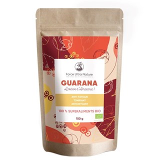 La guarana est une plante médicinale originaire de l'Amazonie, qui est consommée par les brésiliens pour soigner la fièvre, les infections, les maux de tête et aussi pour stimuler la libido. Les graines sont réduites en poudre et offrent de nombreux bienfaits. Cette poudre contient de la guaranine, une molécule proche de la caféine, mais bien plus riche en antioxydants. C'est pourquoi la guarana est considérée comme un aphrodisiaque naturel, et améliore la concentration ainsi que les capacités cognitives. C'est l'allié idéal pour renforcer votre système immunitaire et développer votre vitalité.