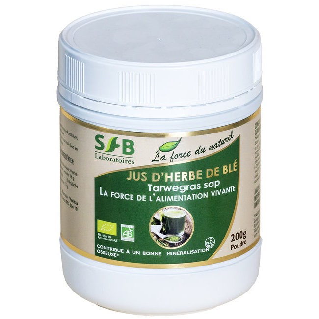 Le jus d'herbe de blé bio des laboratoires SFB est un des aliments naturels les plus riches en vitamines , minéraux , protéines et chlorophylle. Il est l' allié santé de votre organisme tout au long de l'année.