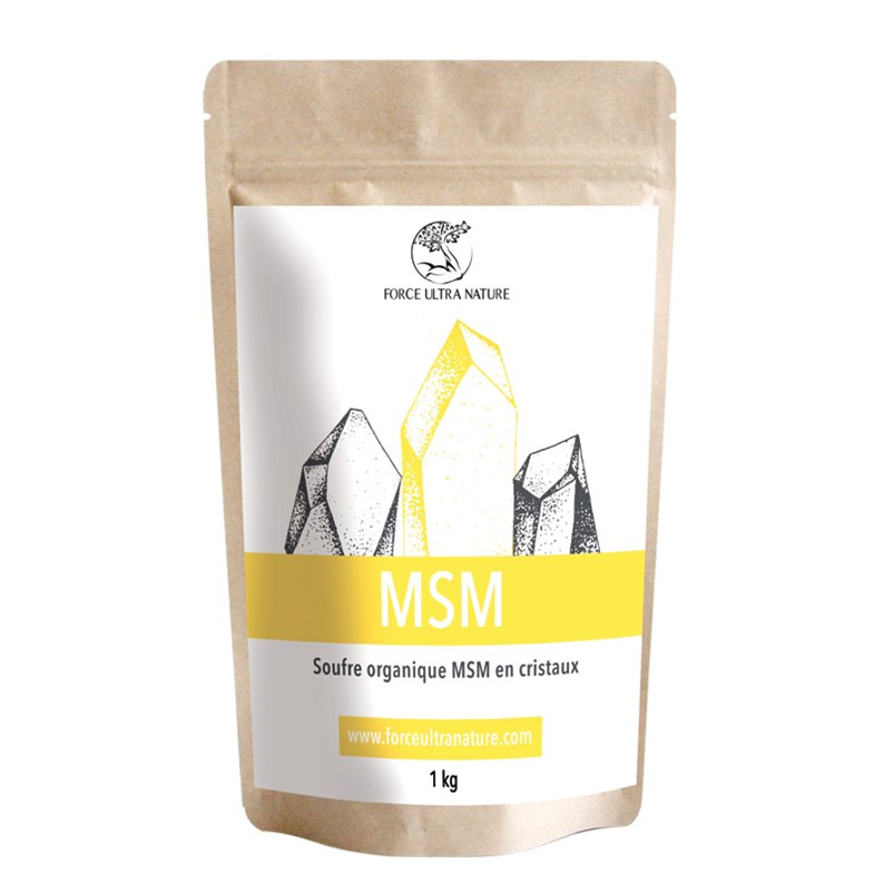 Le Méthylsulfonylméthane (communément appelé MSM) est une source de soufre que l'on trouve partout dans la nature : les arbres, les légumes, les fruits, etc... Il est essentiel dans la formation du collagène, de la kératine, de l'élastine et du cartilage. Le MSM Force Ultra Nature est vendu sous forme de poudre de cristaux.