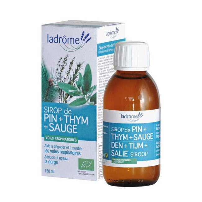 Le sirop bio Pin Thym Sauge de Ladrôme a été conçu pour soulager et apaiser les maux de gorge , dégager et purifier les voies respiratoires et aider à stimuler les défenses immunitaires de l'organisme.