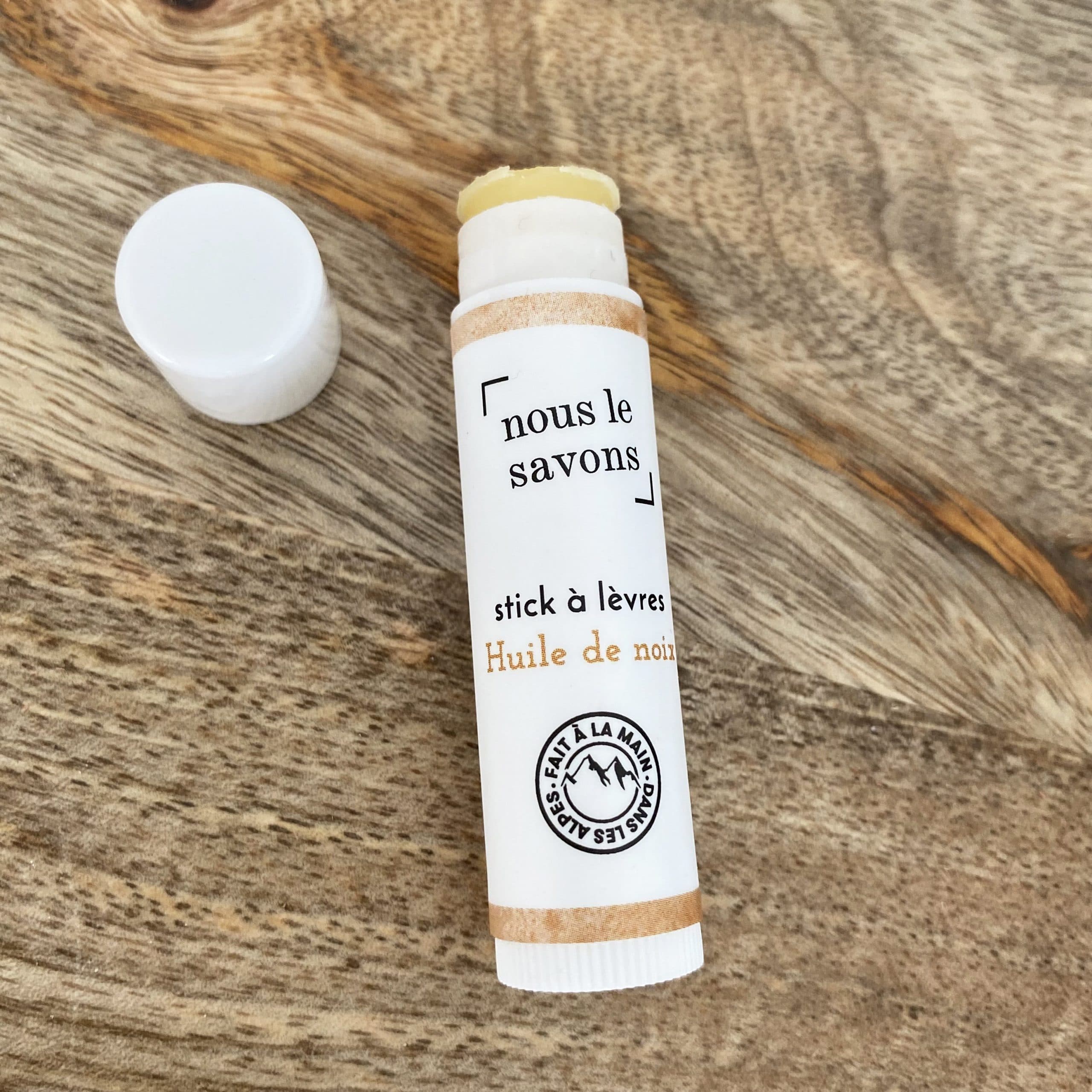 L 'huile de noix de Grenoble est hydratante et apporte une odeur gourmande au stick à lèvres.