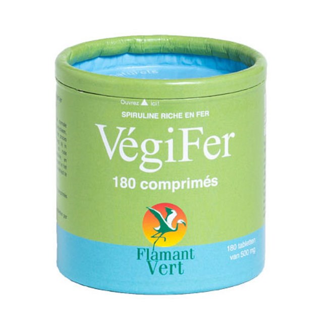Vegifer de Flamant Vert est une source de fer 100% végétal . Ce complément alimentaire à base de spiruline riche en fer apporte naturellement toutes les vitamines , protéines , minéraux et acides aminés essentiels.