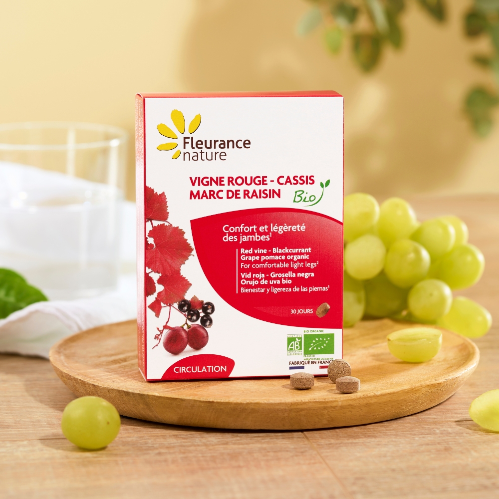 Vigne rouge, cassis, marc de raisin - circulation pour des jambes légères
