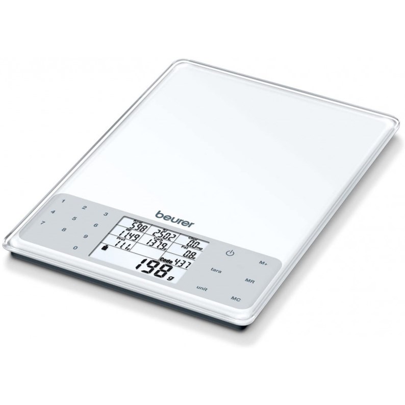 Balance de régime pour l'analyse nutritionnelle de 950 aliments La balance de régime est le compagnon idéal pour une alimentation réfléchie. Elle dispose des valeurs nutritionnelles et énergétiques de 950 aliments enregistrés et vous permet de suivre vos objectifs. Valeurs nutritionnelles et énergétiques de 950 aliments enregistrés (kcal, kJ, lipides, unités de pain, protéines, glucides et cholestérol) et de la place pour 50 emplacements de mémoire individuels Commande moderne à touches tactiles Avec 99 emplacements de mémoire pour les mesures TARE automatique Arrêt automatique, affichage en cas de surcharge Taille des chiffres : 13 mm