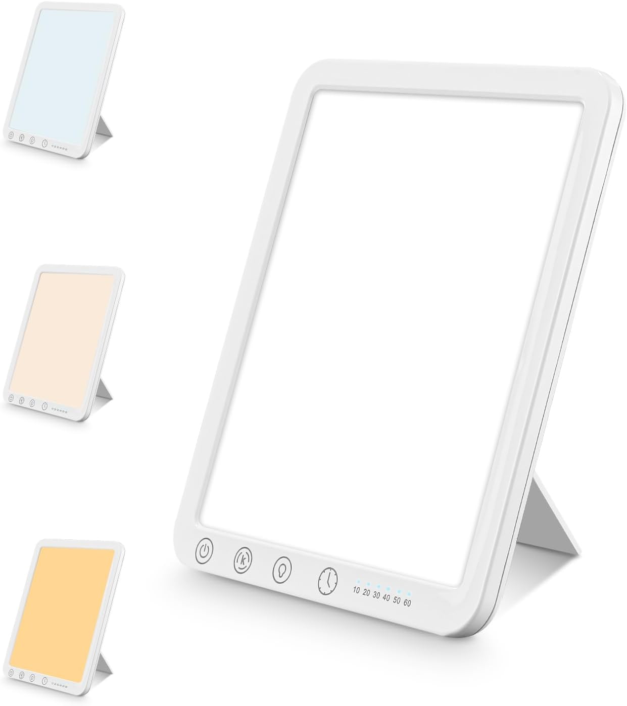 - La lampe de luminothérapie LED peut être réglée sur la lumière chaude, la lumière du jour et la lumière froide (3000K/4500K/6000K) ainsi que sur cinq niveaux de luminosité (20,0 %-100,0 %).