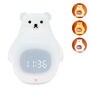 Réveil avec veilleuse pour enfants, intensité réglable. Design ours polaire.