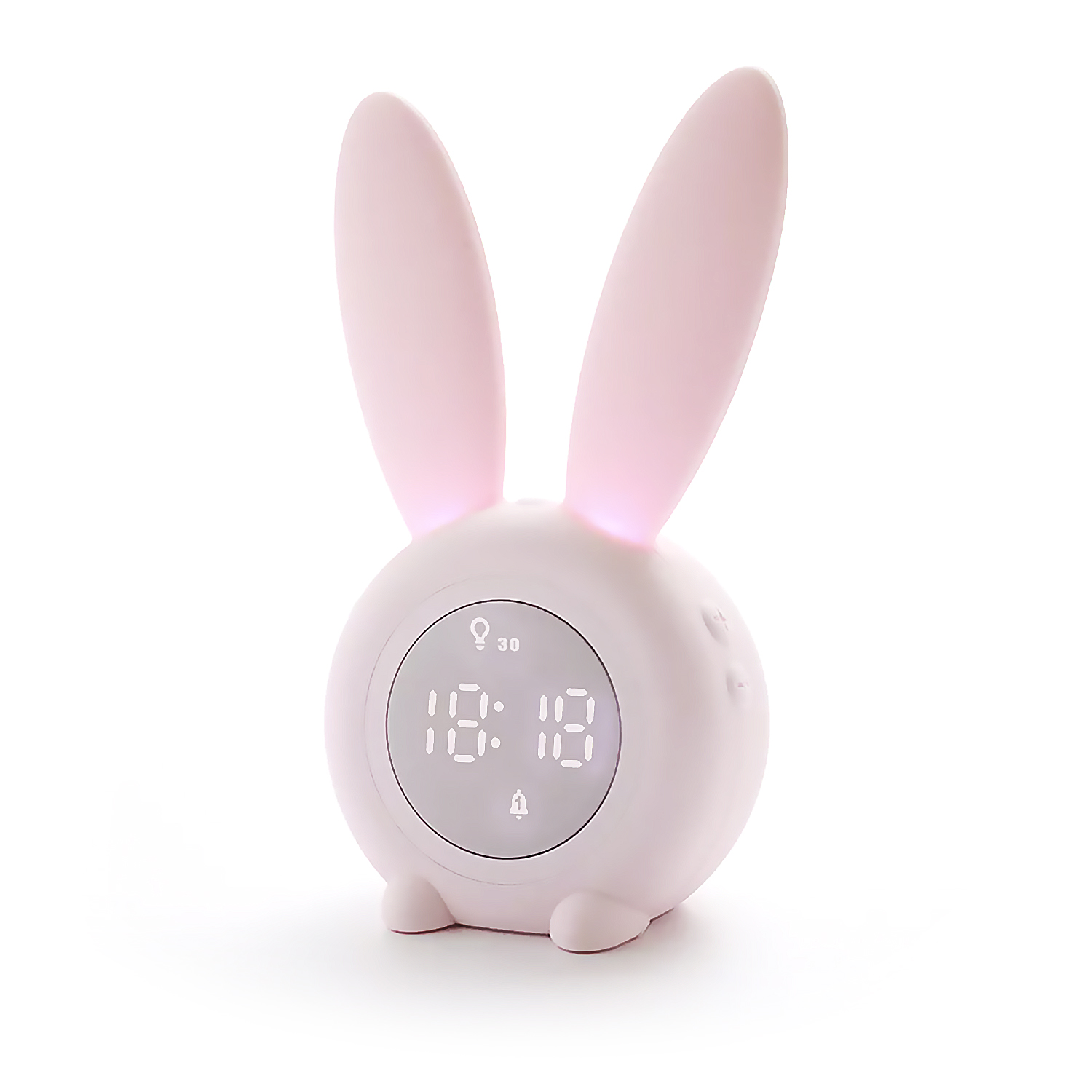 Réveil enfant lapin avec lumière. Éteindre en secouant. Batterie rechargeable.