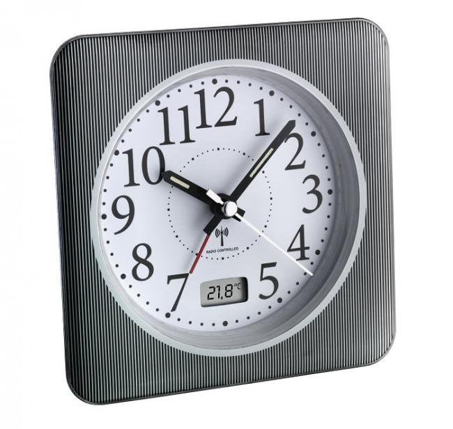 Réveil radio-piloté avec affichage analogue avec aiguilles fluorescentes.