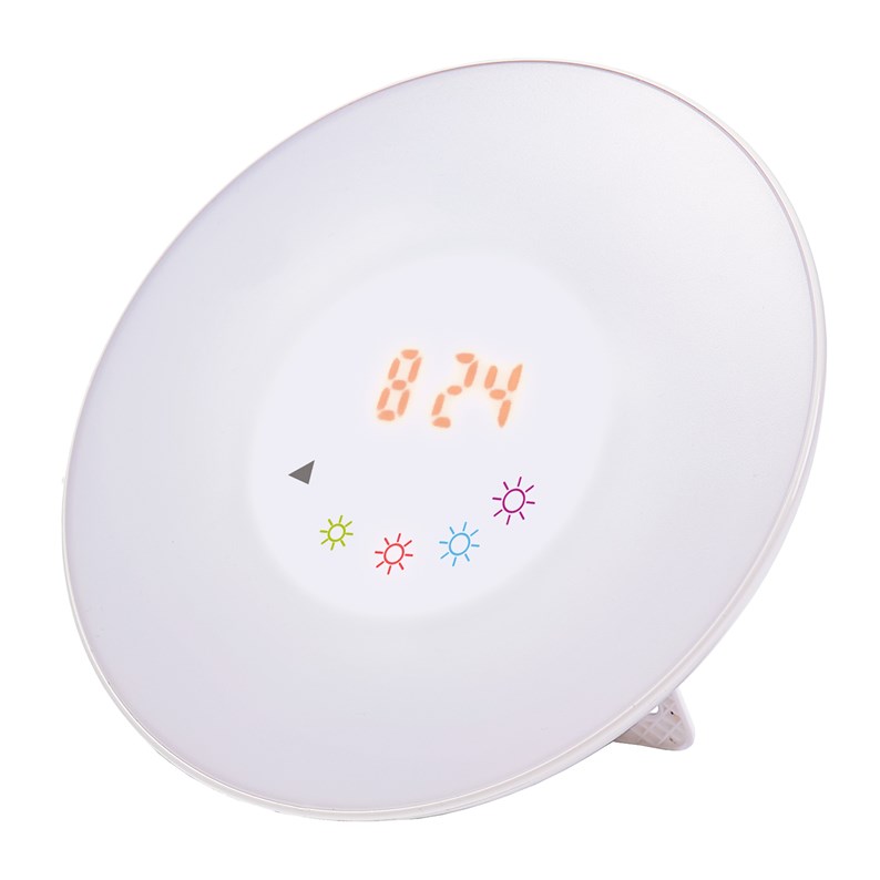 - Choisissez la couleur de votre éclairage. Rouge, vert, jaune ou violet ? Votre réveil change de couleur, votre pièce d’atmosphère, selon vos envies ! Couleurs défilantes ou fixes.