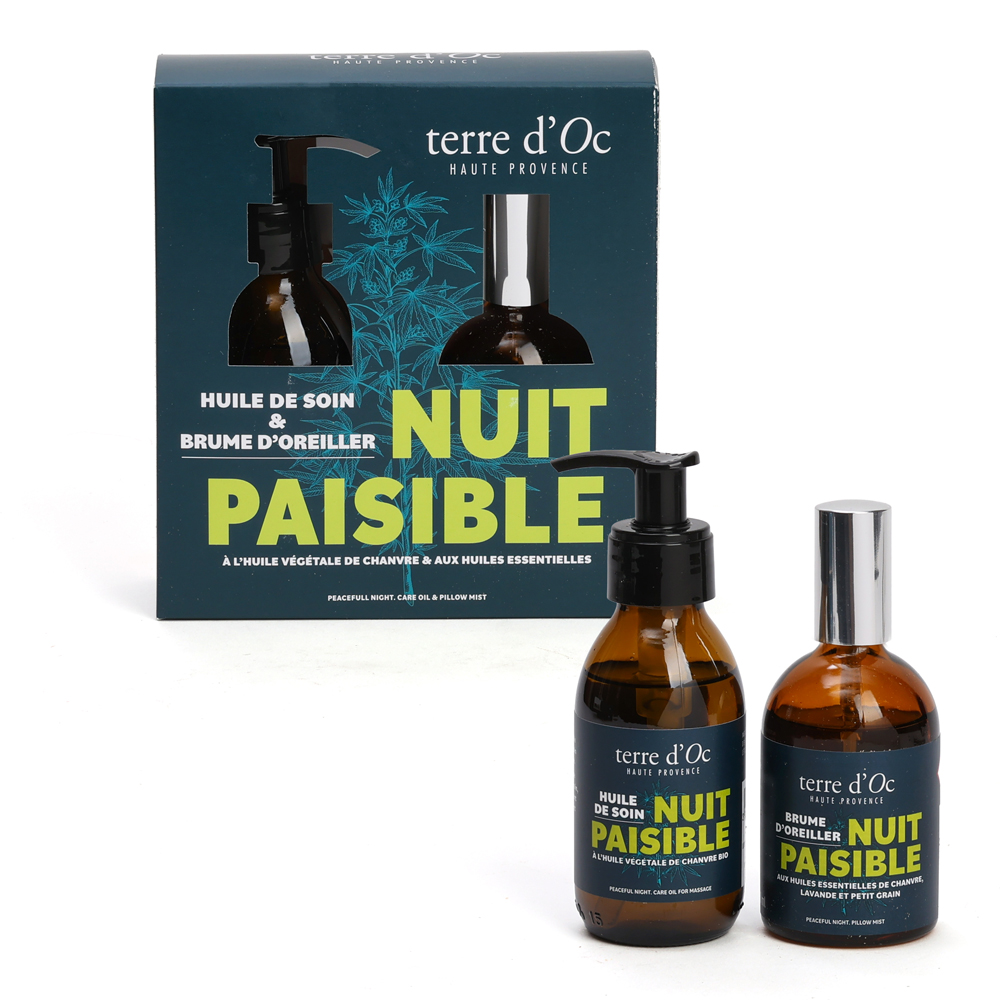 Coffret Nuit paisible huile de massage et brume d'oreiller au chanvre terre d'Oc
